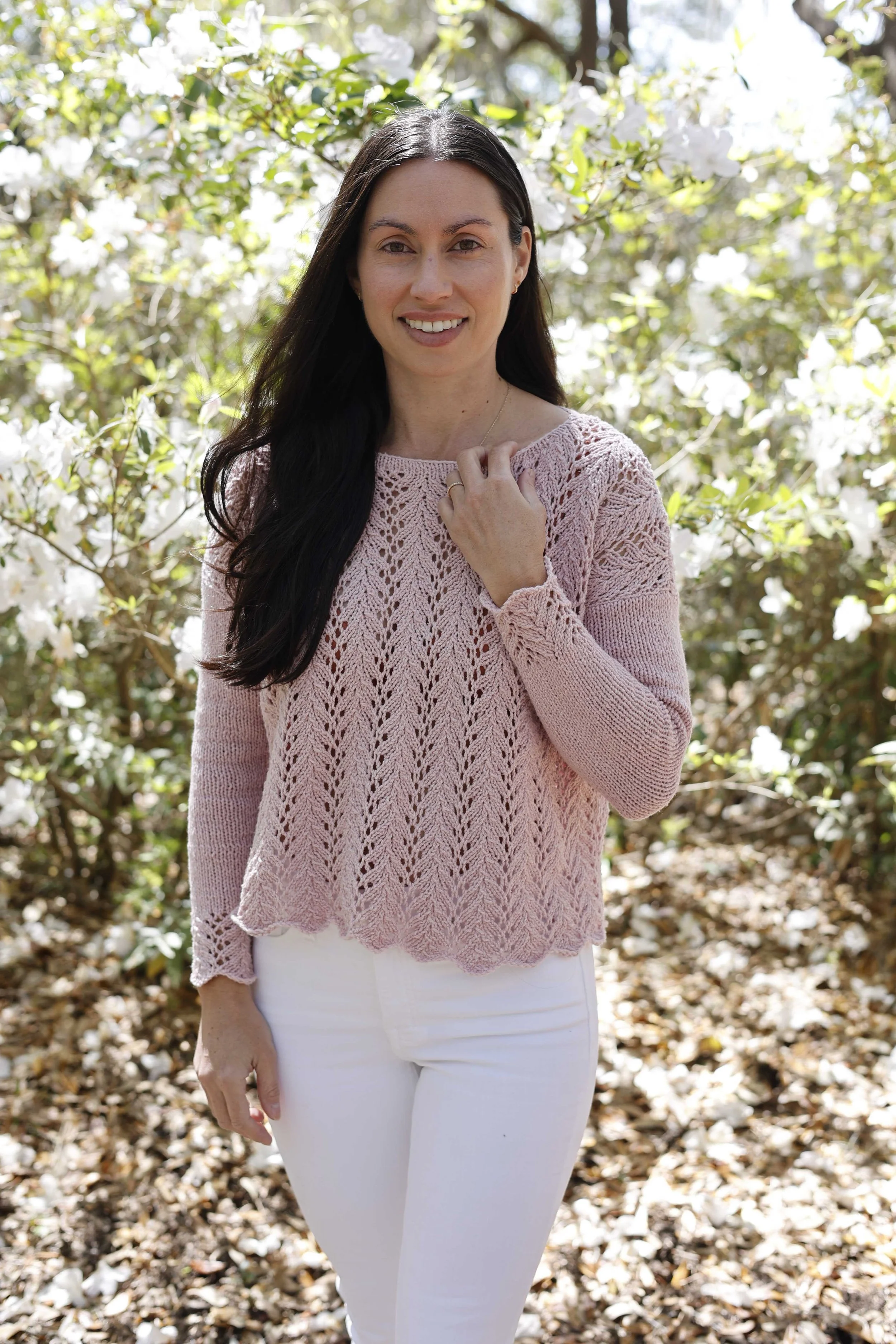 Substitution notes: Look for a dk-weight cotton or cotton blend yarn for a look closest to the summer-friendly samples and a dk-weight wool or wool blend yarn for a look closest to the fall-friendly samples.